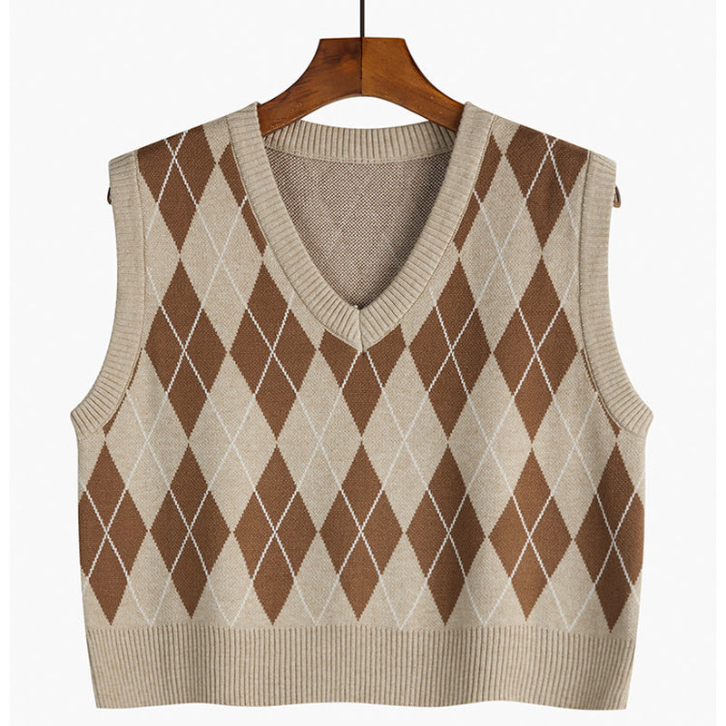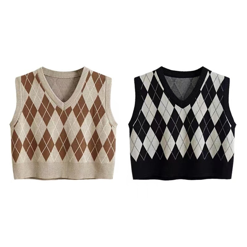 Autumn Fashion Female Vintage Plaid Sweater Vests Women's Tank Tops Knitted Crop Top Women Sleeveless Knitted Vest Waistcoat