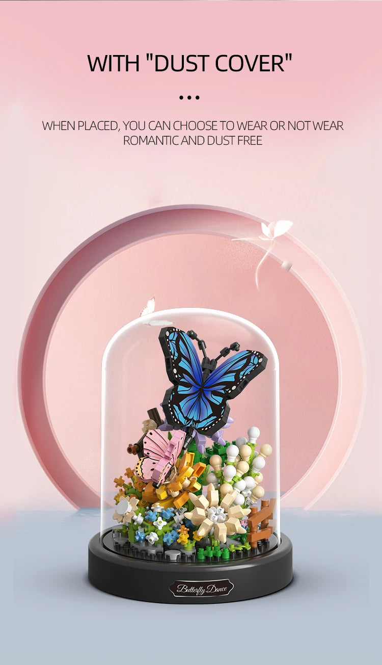 Balody Bee Butterfly Flower Bonsai Building Blocks Insect Plant Potted Model Bricks With Dust Cover DIY Toy For Kid Holiday Gift