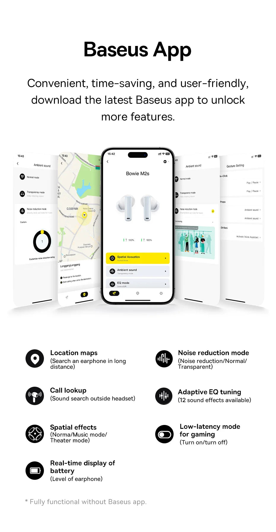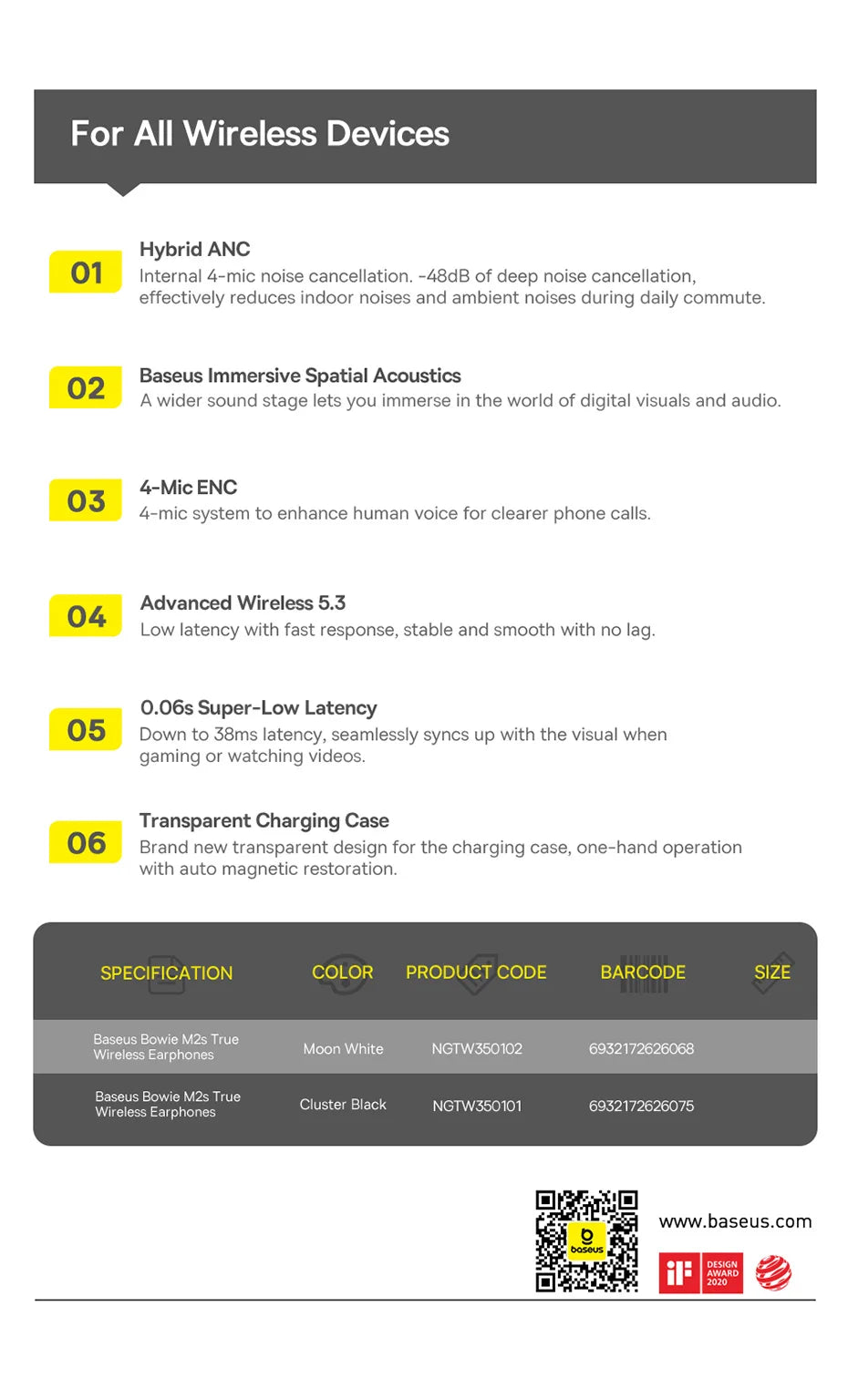 Baseus Bowie M2s Wireless Earphone Bluetooth 5.3 -48dB Active Noise Cancellation Headphone Support 3D Spatial Audio TWS Earbuds