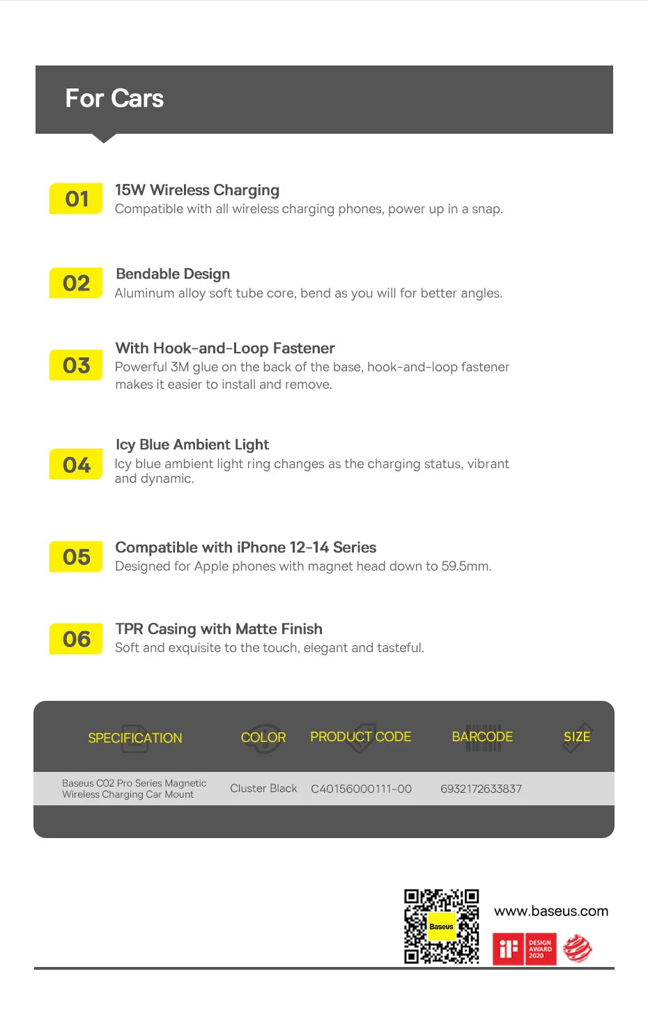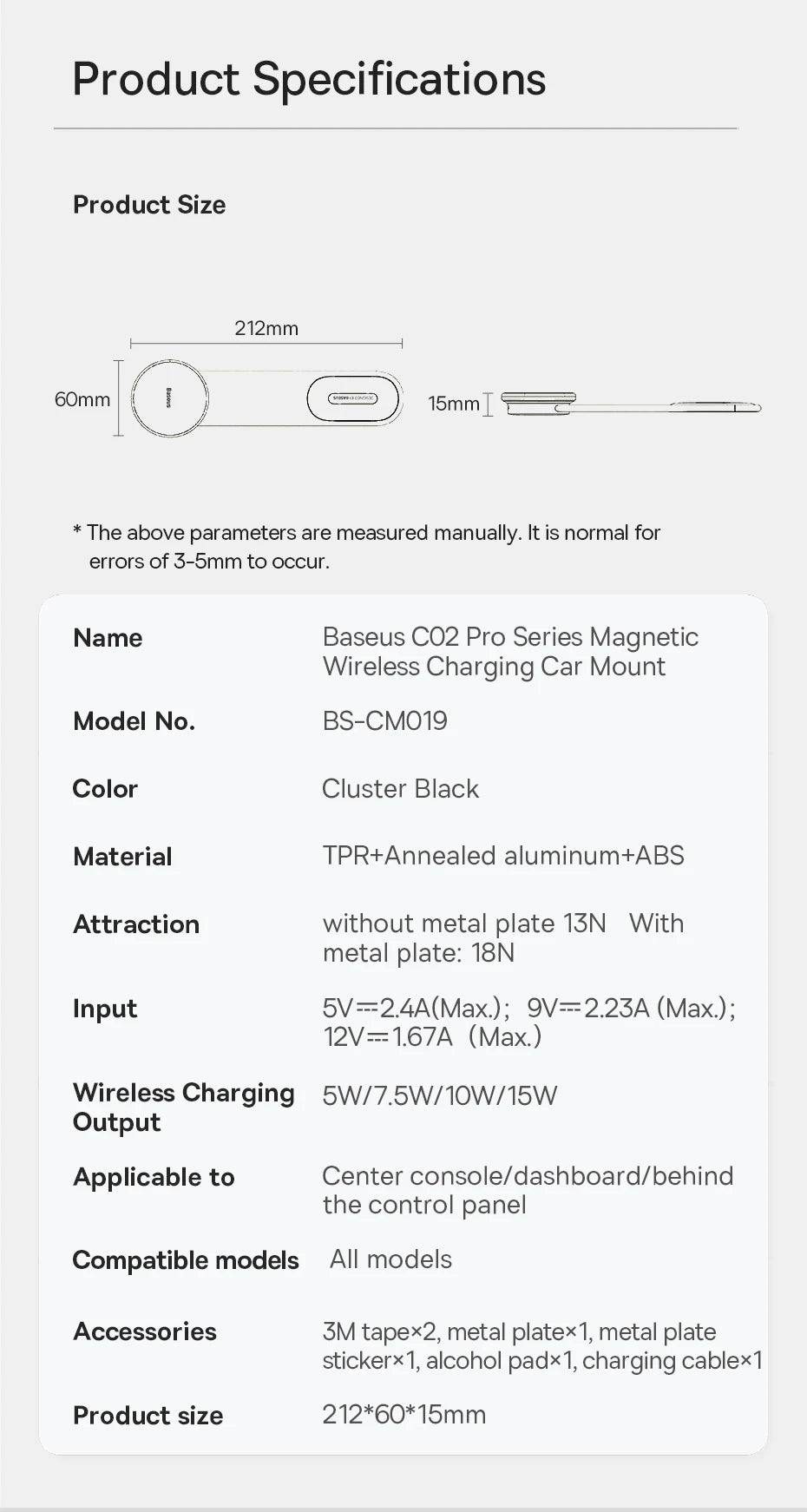 Baseus C02 Pro Series Magnetic Wireless Charging Car Mount Cluster Black