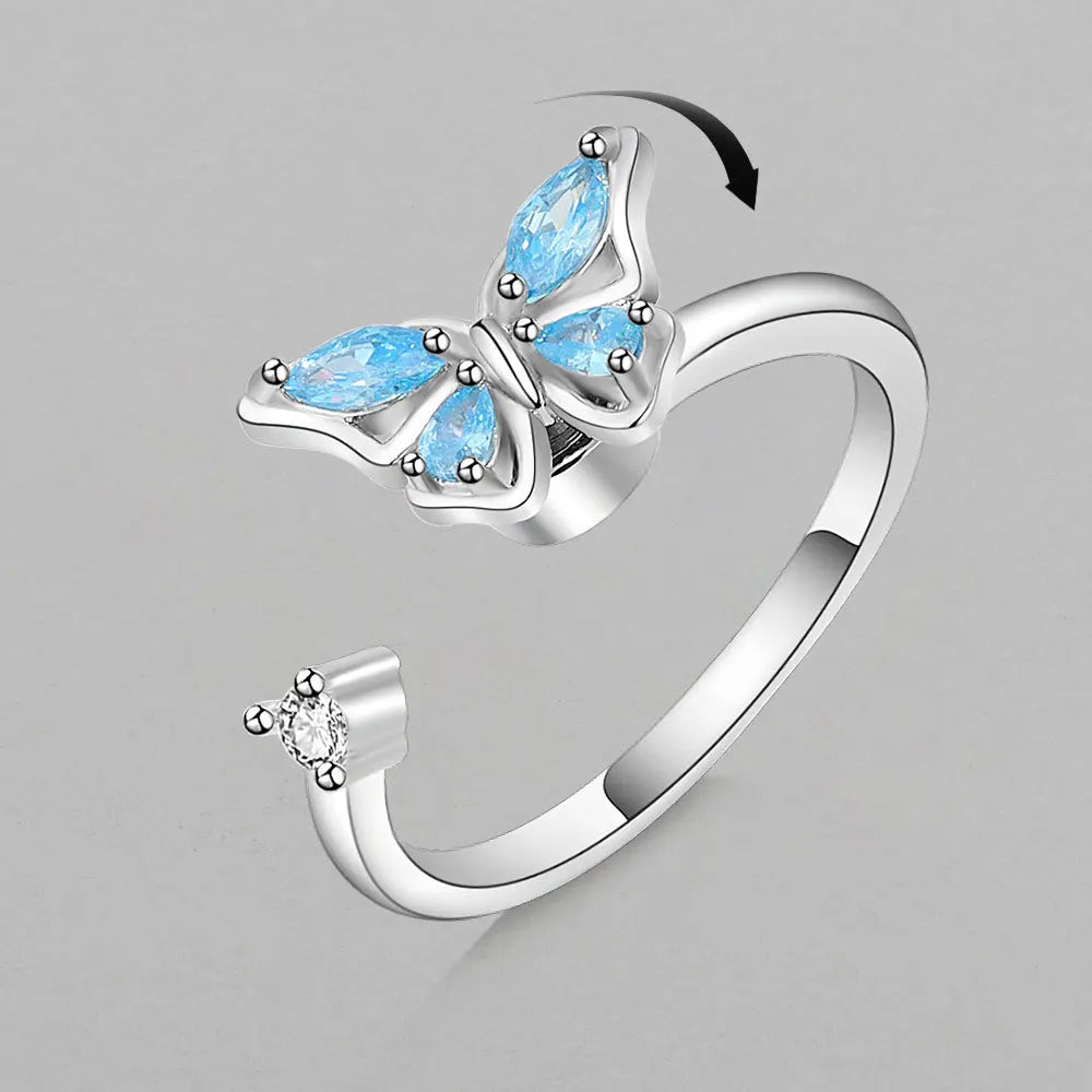 Blue Fidget Spinner Ring Anxiety for Women Multiple Crystal Flower Butterfly Animal Ring Rotate To Anti Stress for Wedding Party