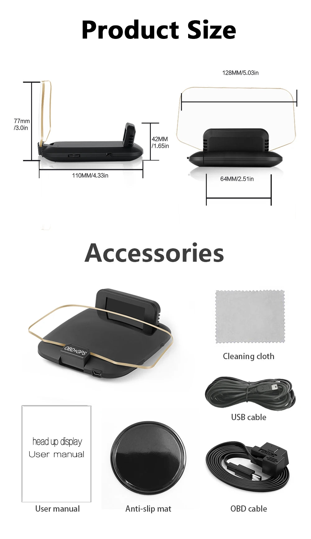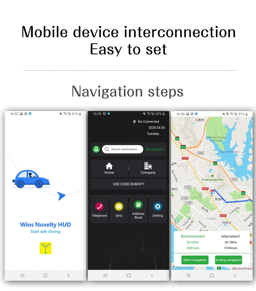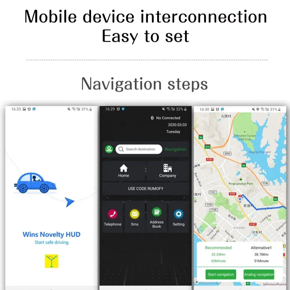 C1 Car Navigation Projection HUD Head Up Display Speedometer Multiple Interfaces Car Accessories on Screen Overspeed Alarm