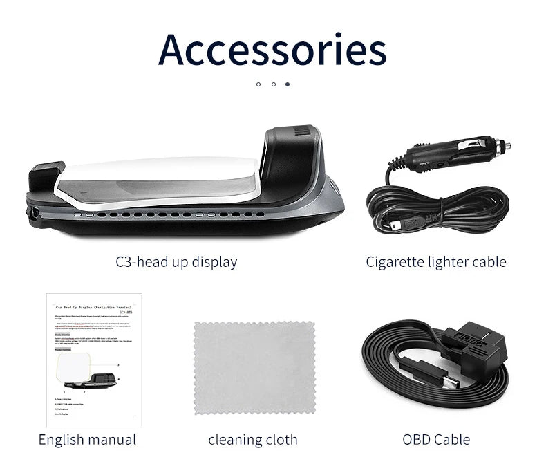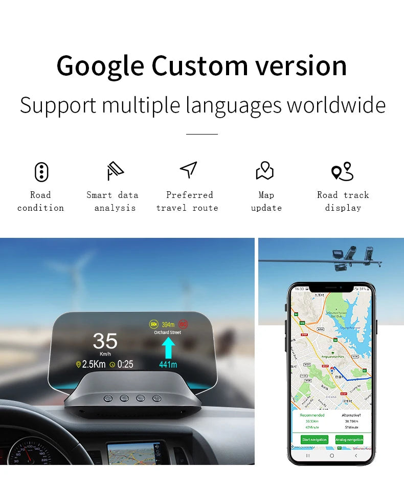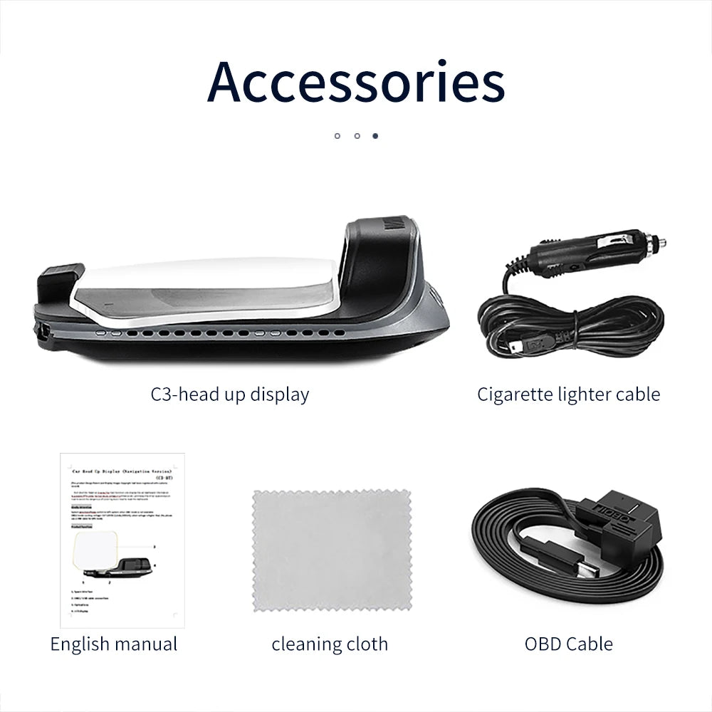 C3 Navigation Mirror HUD Car Head up Display with OBD2 HD GPS Navigation Bluetooth Windshield Speed Projector Security Alarm