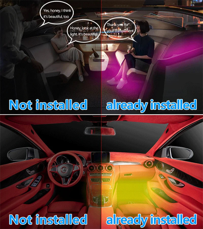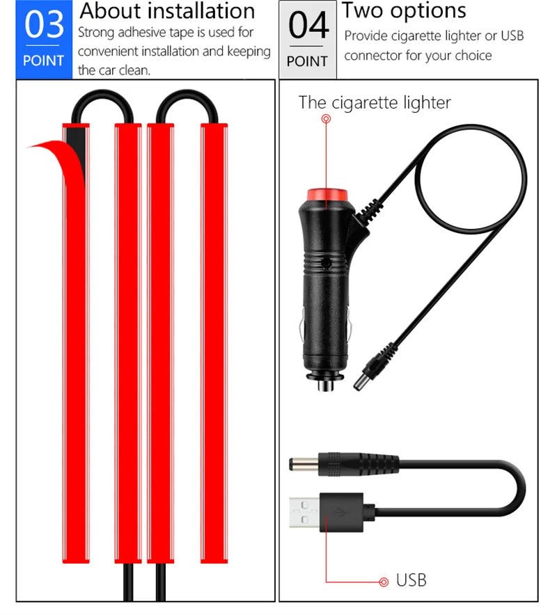 Car Foot Ambient Light RGB LED Car Interior Lights USB Cigarette Lighter Backlight Music Control Wireless App Atmosphere Lights
