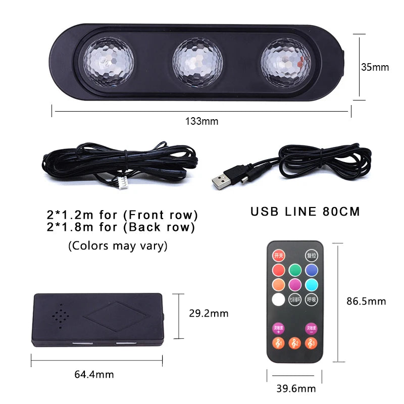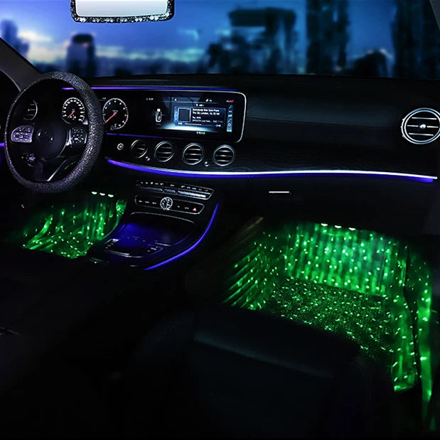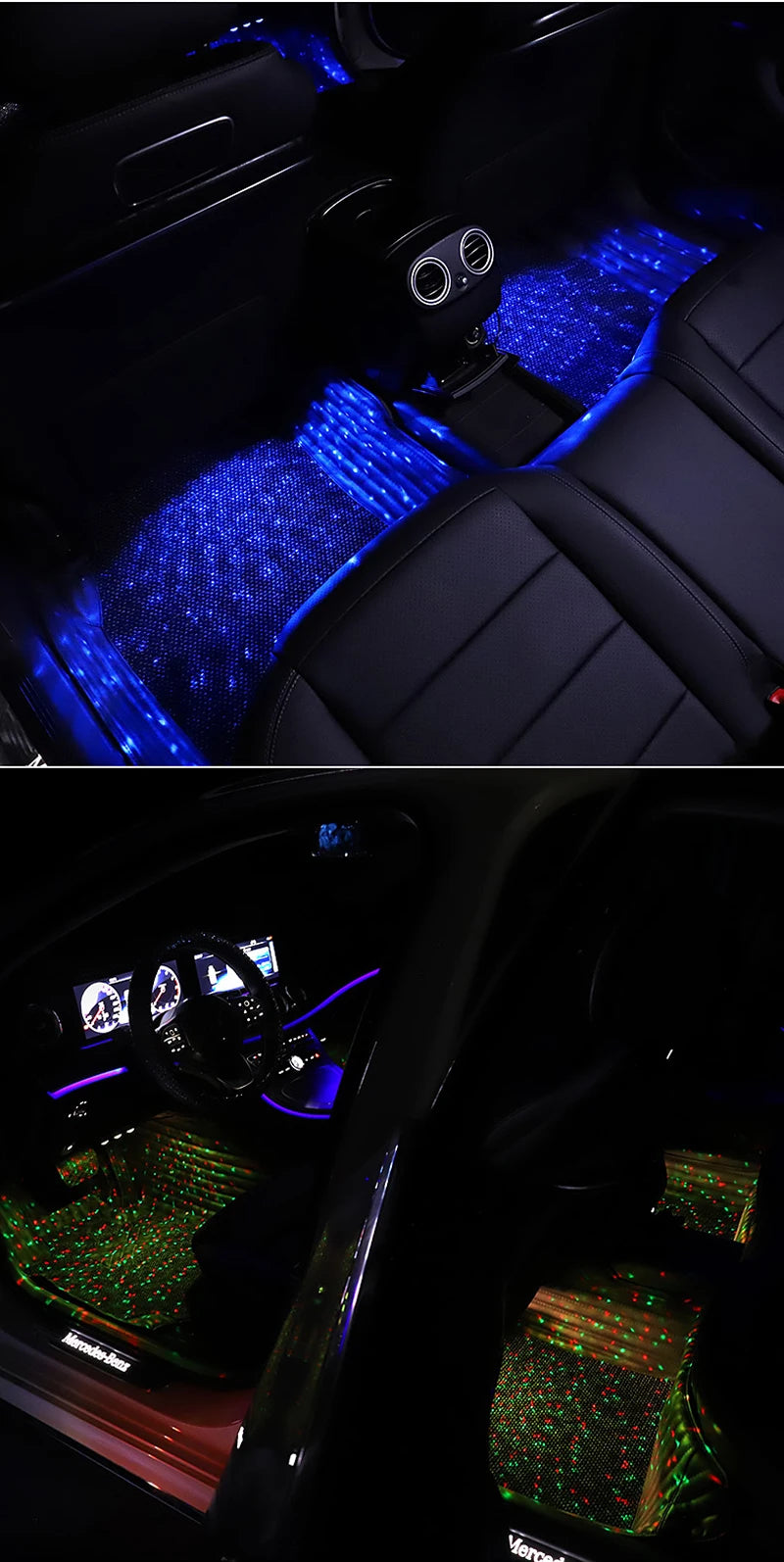 Niscarda 4pcs Car LED Starry Foot Light USB Atmosphere Ambient DJ Mixed Colorful Music Rhythm Sound Voice Control Laser Lamp