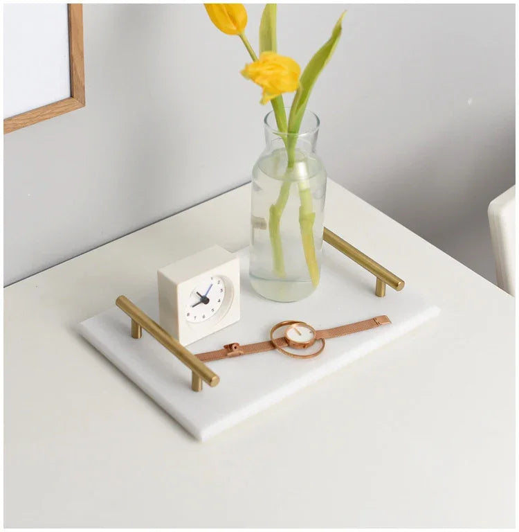 Nordic Home Decor Light Luxury Natural Marble Jewelry Storage Tray with Gold Handle Trinket Ring Plate Wedding Gift