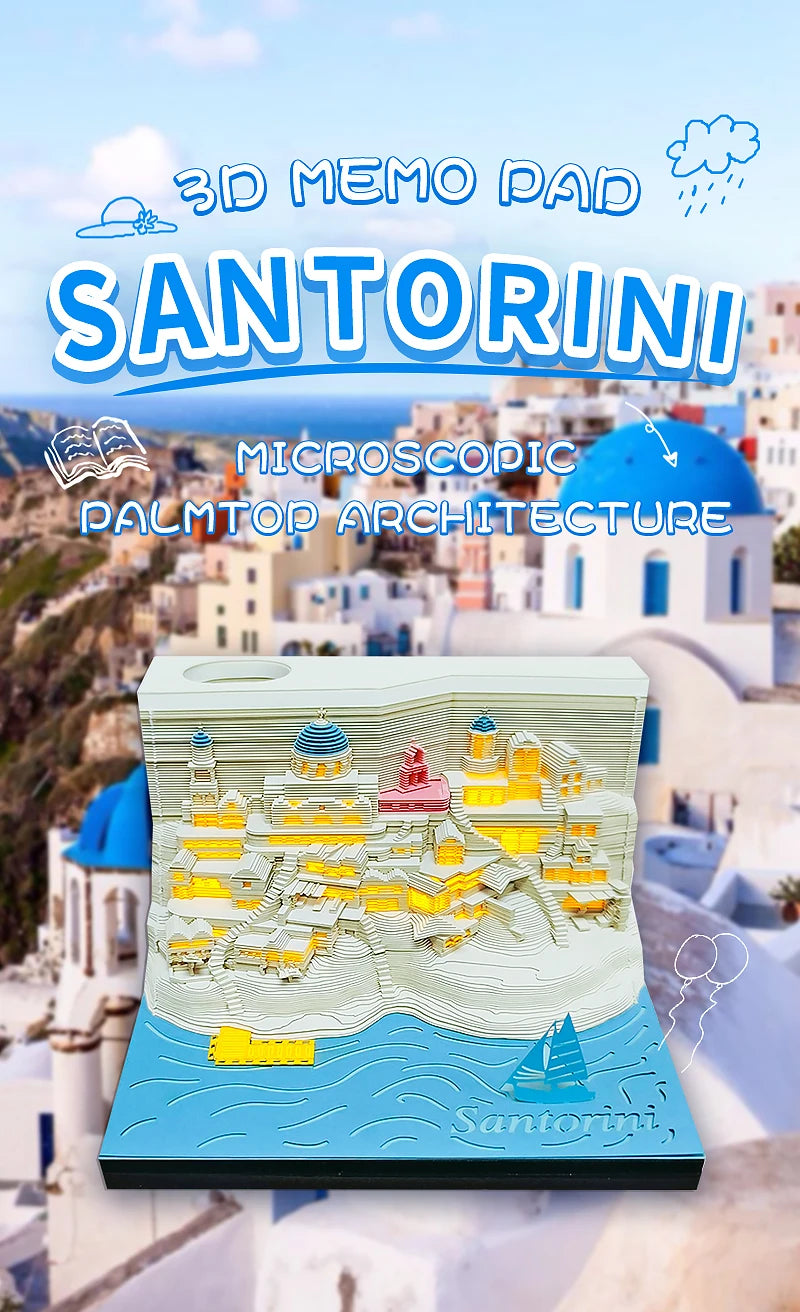 Omoshiroi Block 3D Memo Pad Santorini Magic Calendar Desk Decoration Tear Off Notepad Bookmark Souvenir Gift Girlfriend Birthday
