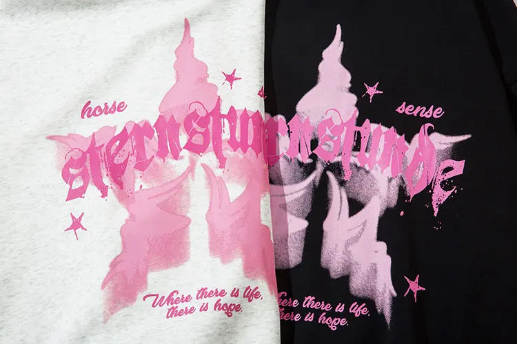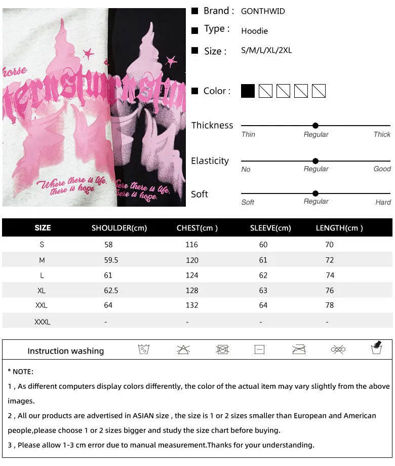 Oversized Hoodie Grunge Vintage Star Graphic Printed Hooded Sweatshirt with Chain Hip Hop Punk Gothic Baggy Pullover Streetwear