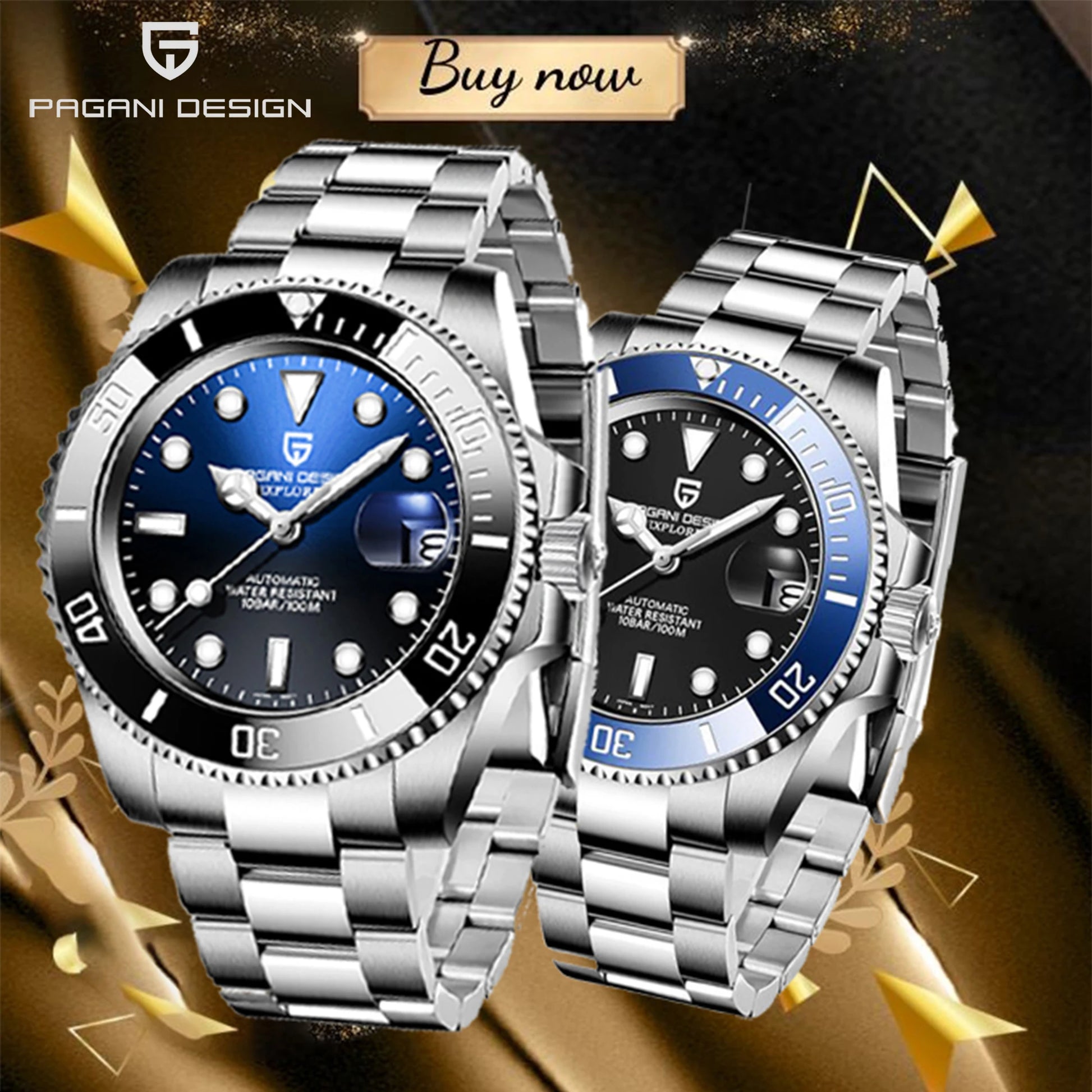 PAGANI DESIGN Men's Mechanical Wristwatches Luxury Brand Mens Watch NH35 100m Waterproof Sapphire Diving Watch reloj hombre