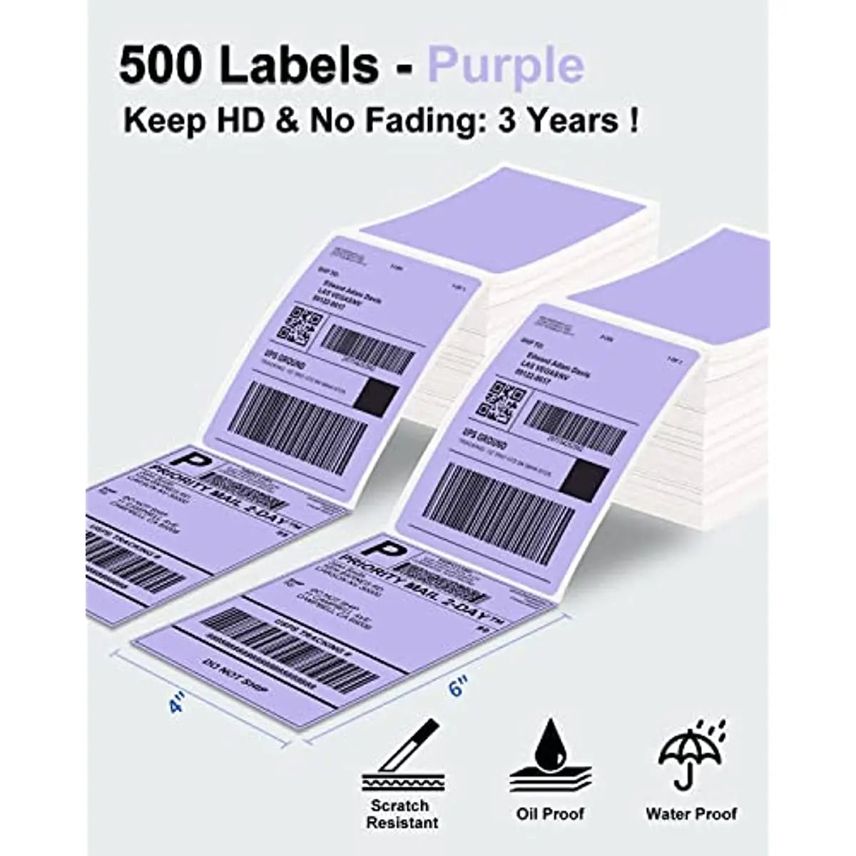 Phomemo 4x6 Thermal Labels for Shipping Label Printer - 500PCS Purple Mailing Labels 4x6 Direct Thermal Labels Fanfold BPA Free