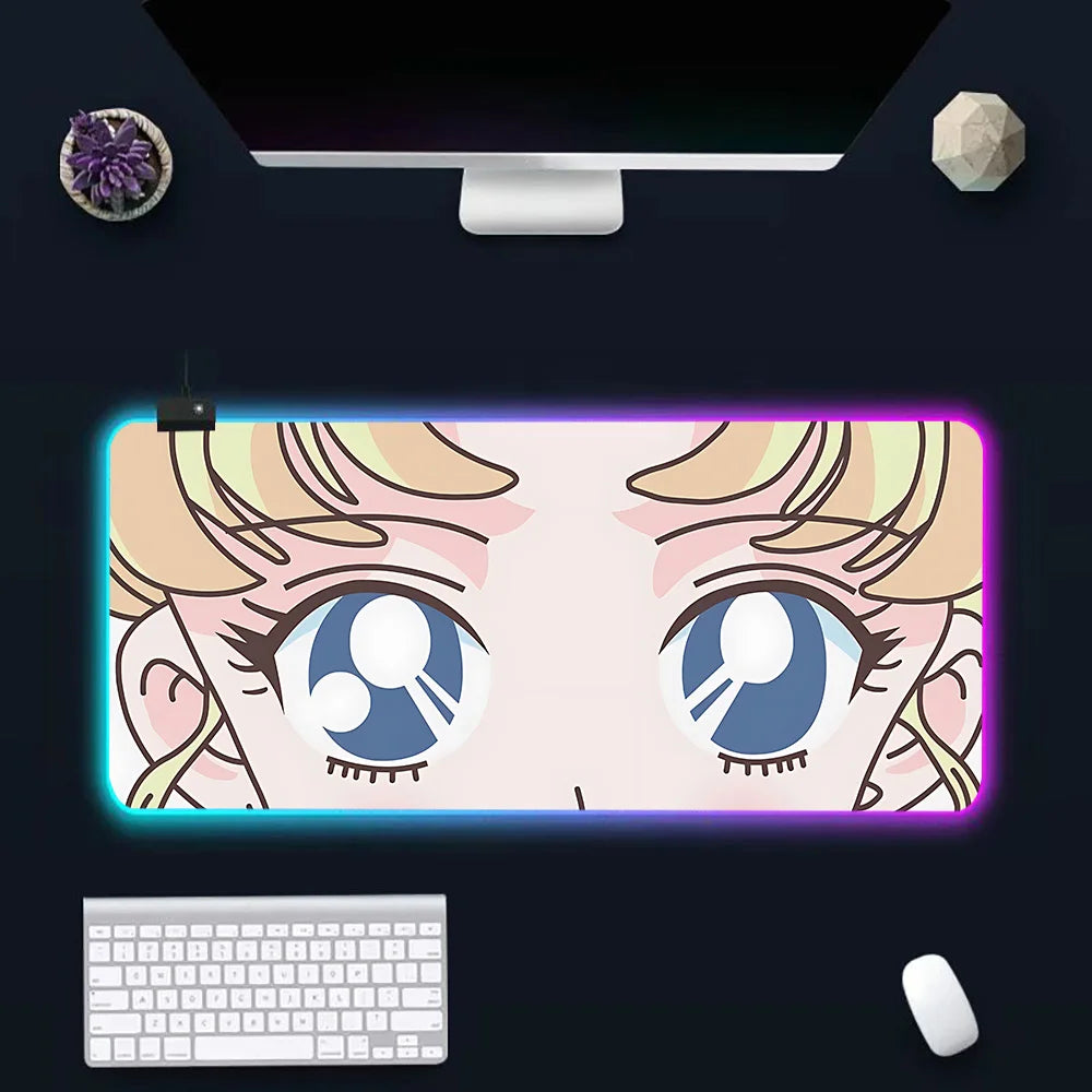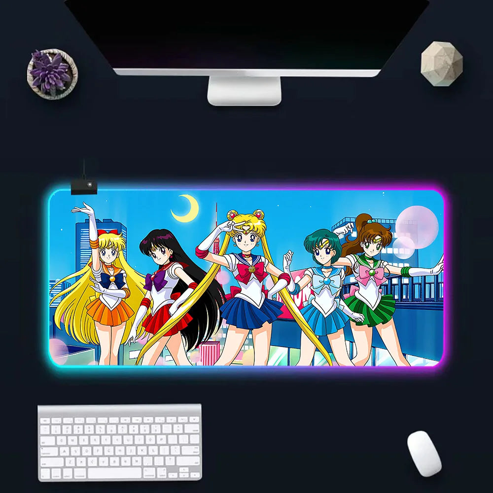 Pink Girl Cartoon Sailors Moons RGB Pc Gamer Keyboard Mouse Pad Mousepad LED Glowing Mouse Mats Rubber Gaming Computer Mausepad