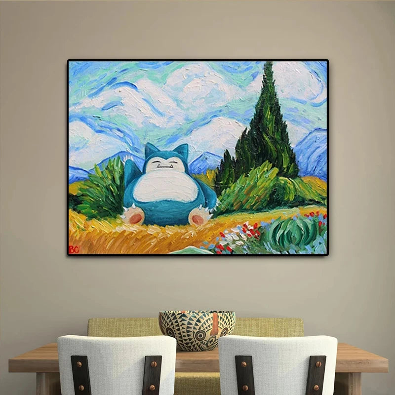 Pokemon Snorlax Van Gogh Print Wall Art Canvas Painting Poster Nursery Pokemon Snorlax Oil Picture Modern Living Room Decor