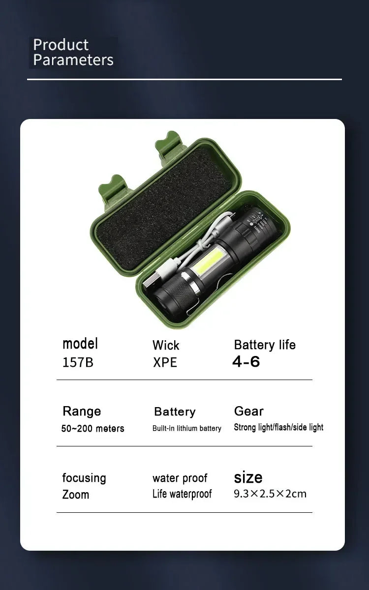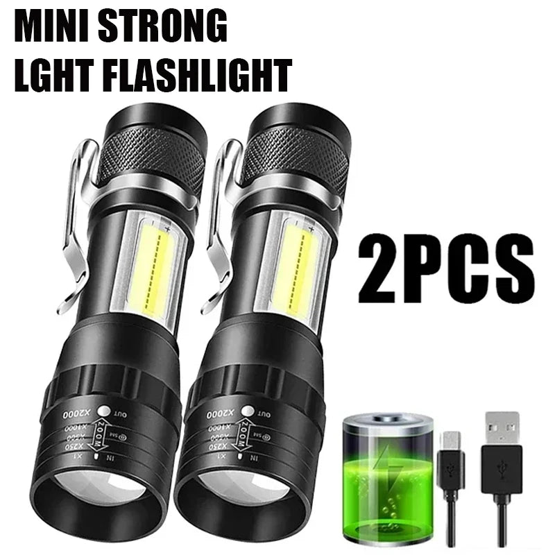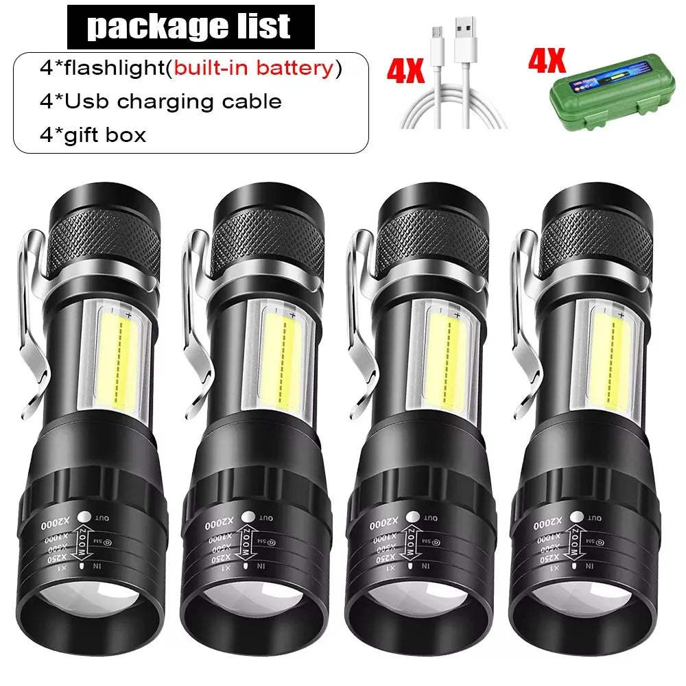 Powerful Mini LED Flashlight Pen Clip Zoom Torch Built in Battery USB Rechargeable Lantern with Side Light Outdoor Camping Lamp