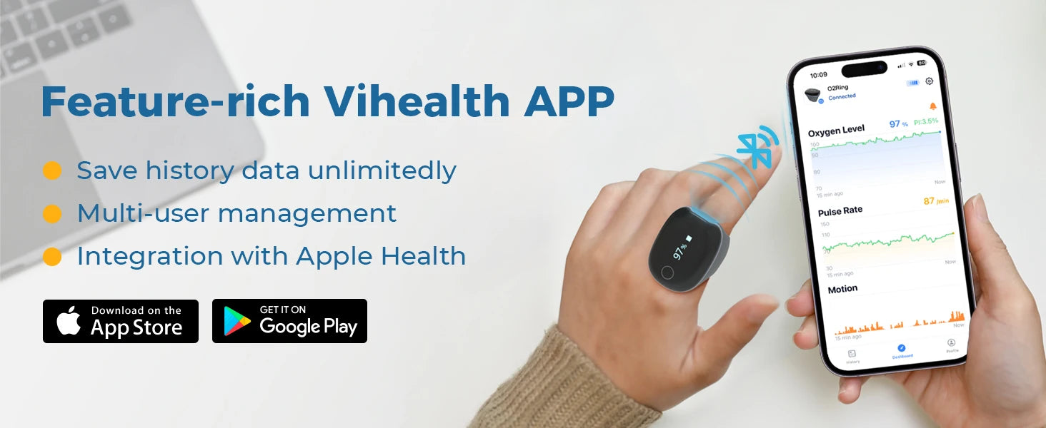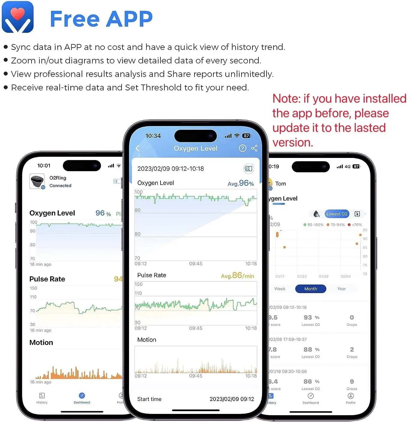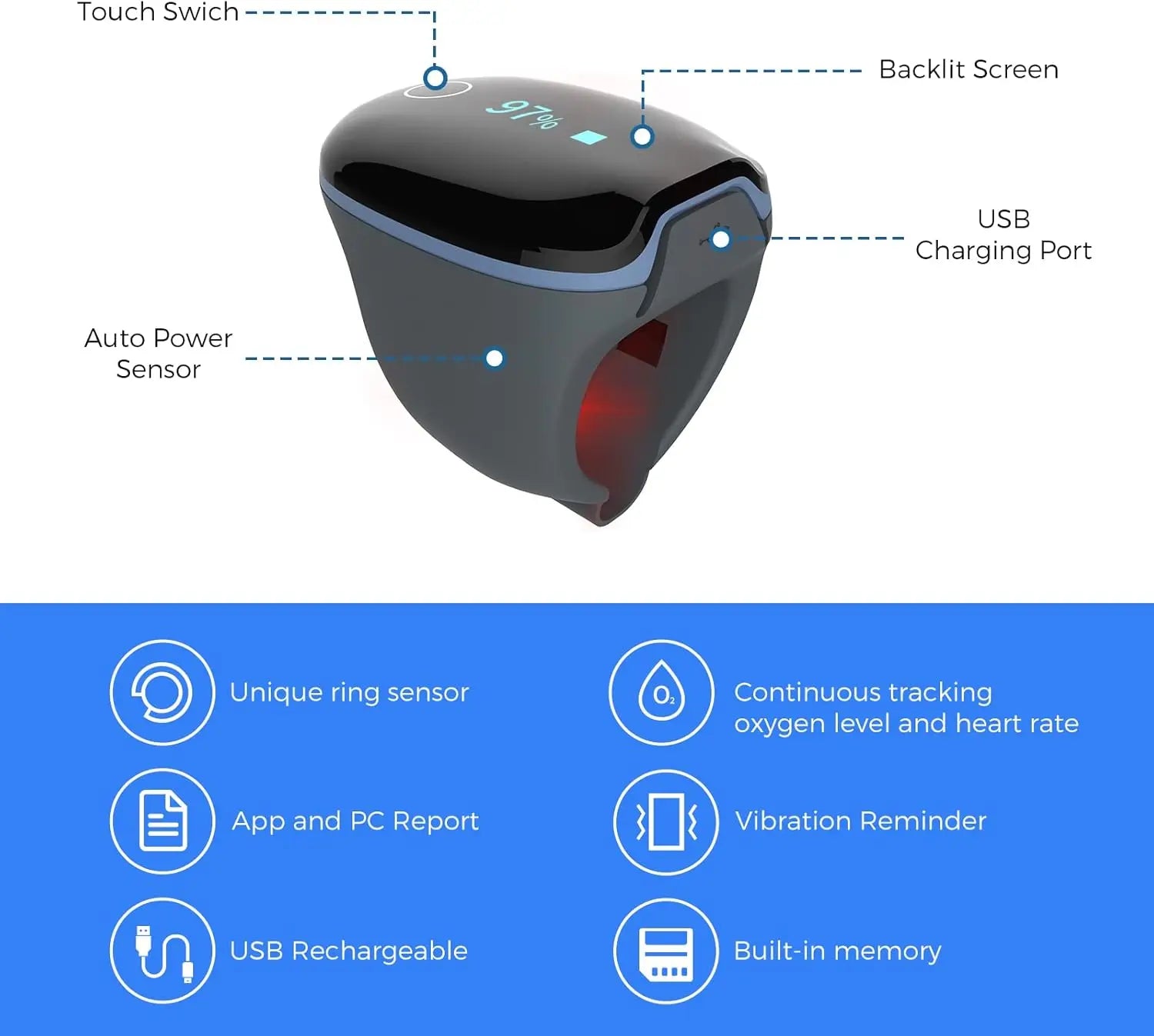 Pulse Oximter, Bluetooth SPO2 Blood Oxygen Saturation Monitor - Wearable O2 Ring Sensor with Vibration Reminder, F