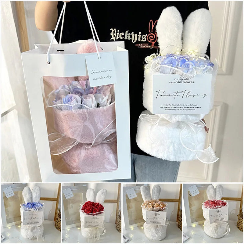 Rabbit Soap Flower Bouquet Valentine's Day Gifts Artificial Flower Bouquet for Party Supplies Bouqet Flowers Home Decoration
