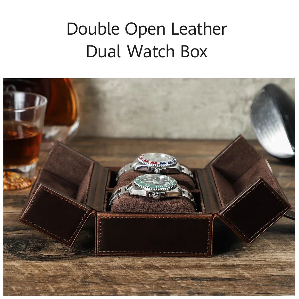 Retro Luxury Genuine Leather 2 Slots Watch Roll Case Travel Portable Organizer Display Storage Box with Pillow Handmade Gifts