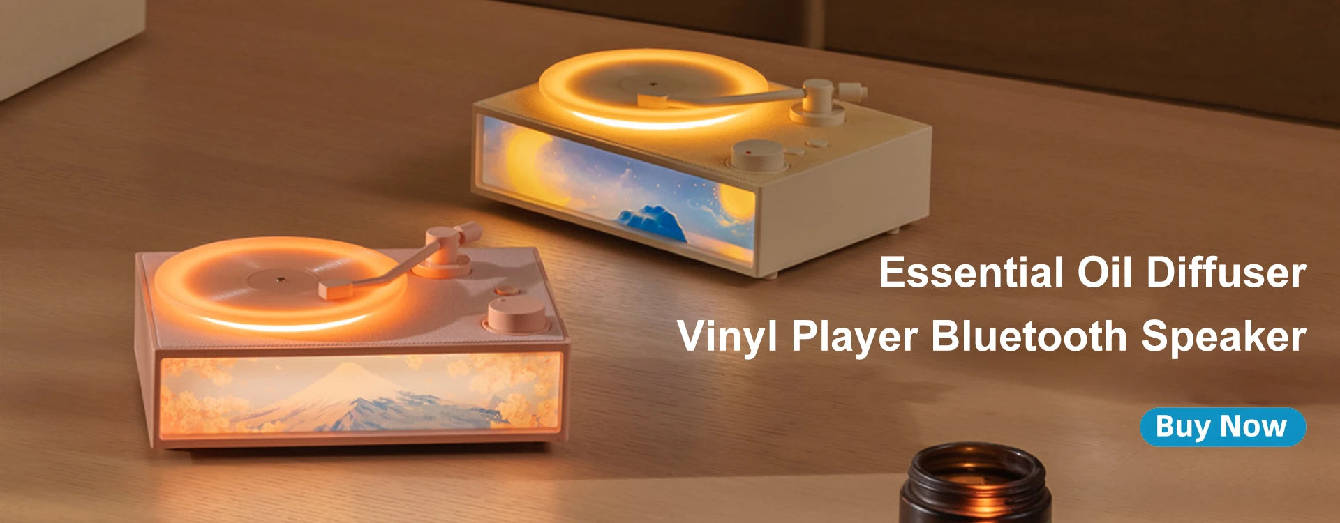 Retro Vintage Waves Vinyl Player Bluetooth Speaker with White Noise Portable Mini Wireless Sleep Aid Turntable Speaker with AUX