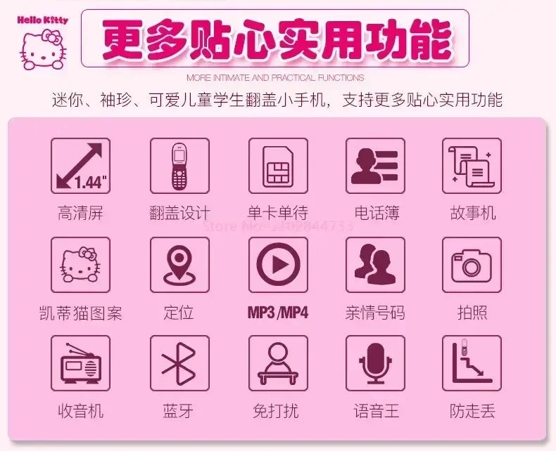 Sanrio Hello Kitty Flip Phone New Cartoon Cute Children White Pink Kawaii Mini Phone Children Birthday Gifts Fashion Model Toys