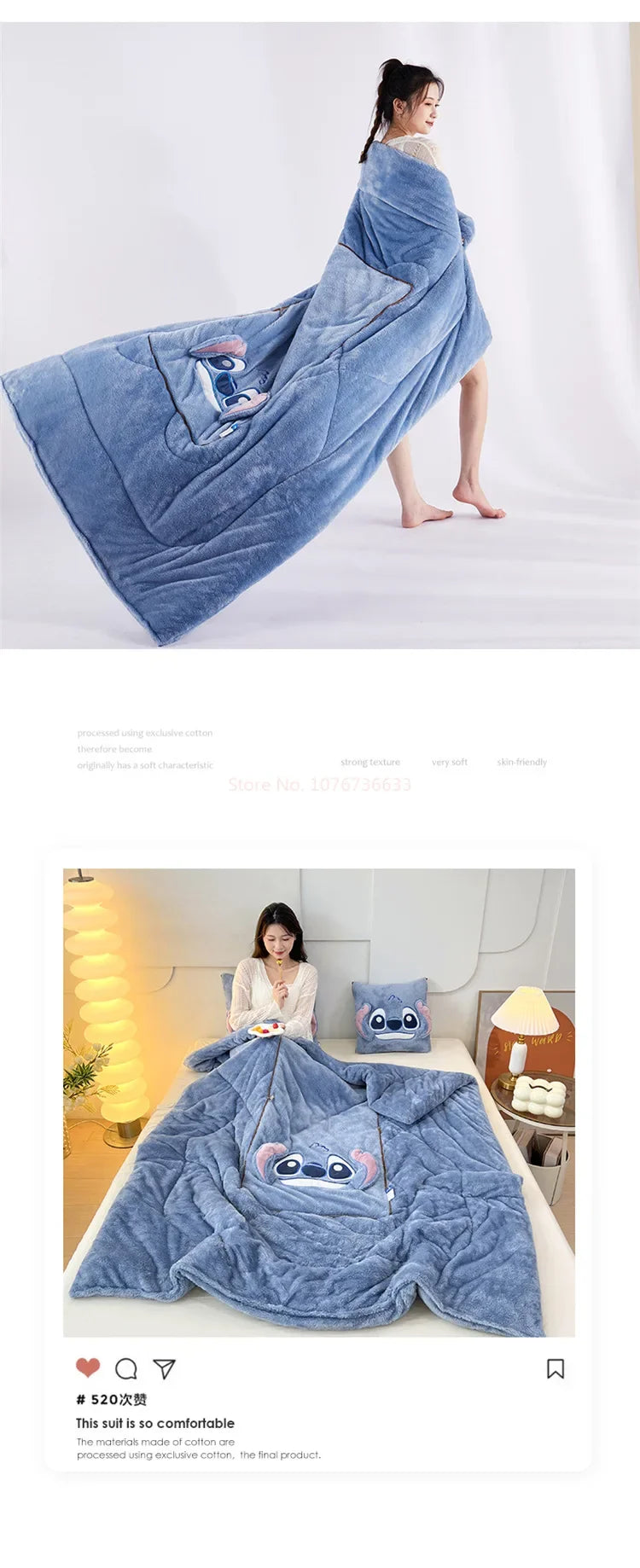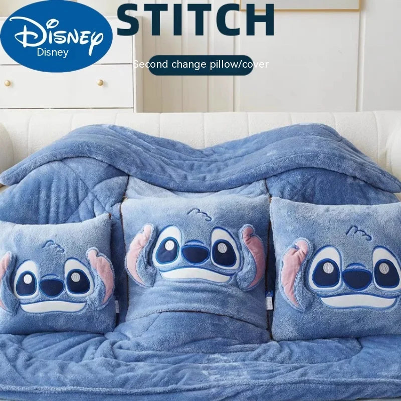 Stitch Disney Throw Pillow Blankets Two In One Kawaii Flannel Pillow Thickened Nap Blanket Living Room Cute Decoration Bedroom