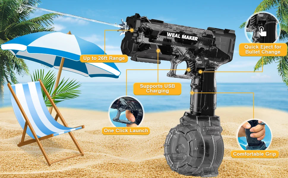 Strong Glock LED Electric Water Pistol Toy Automatic Squirt Water Gun Continuous Spray Blaster Summer Pool Toys for Kids Adult