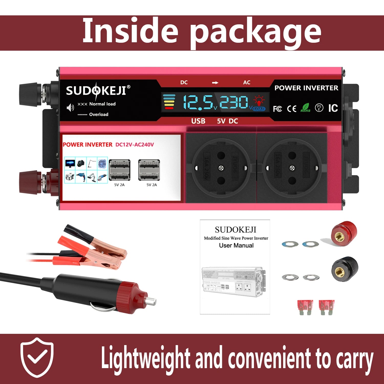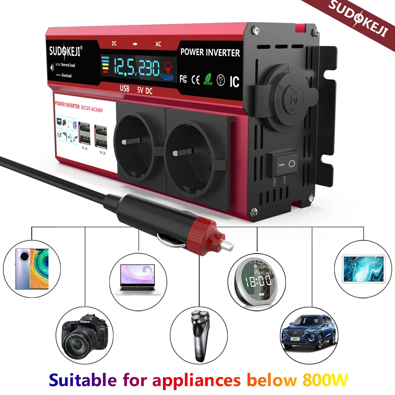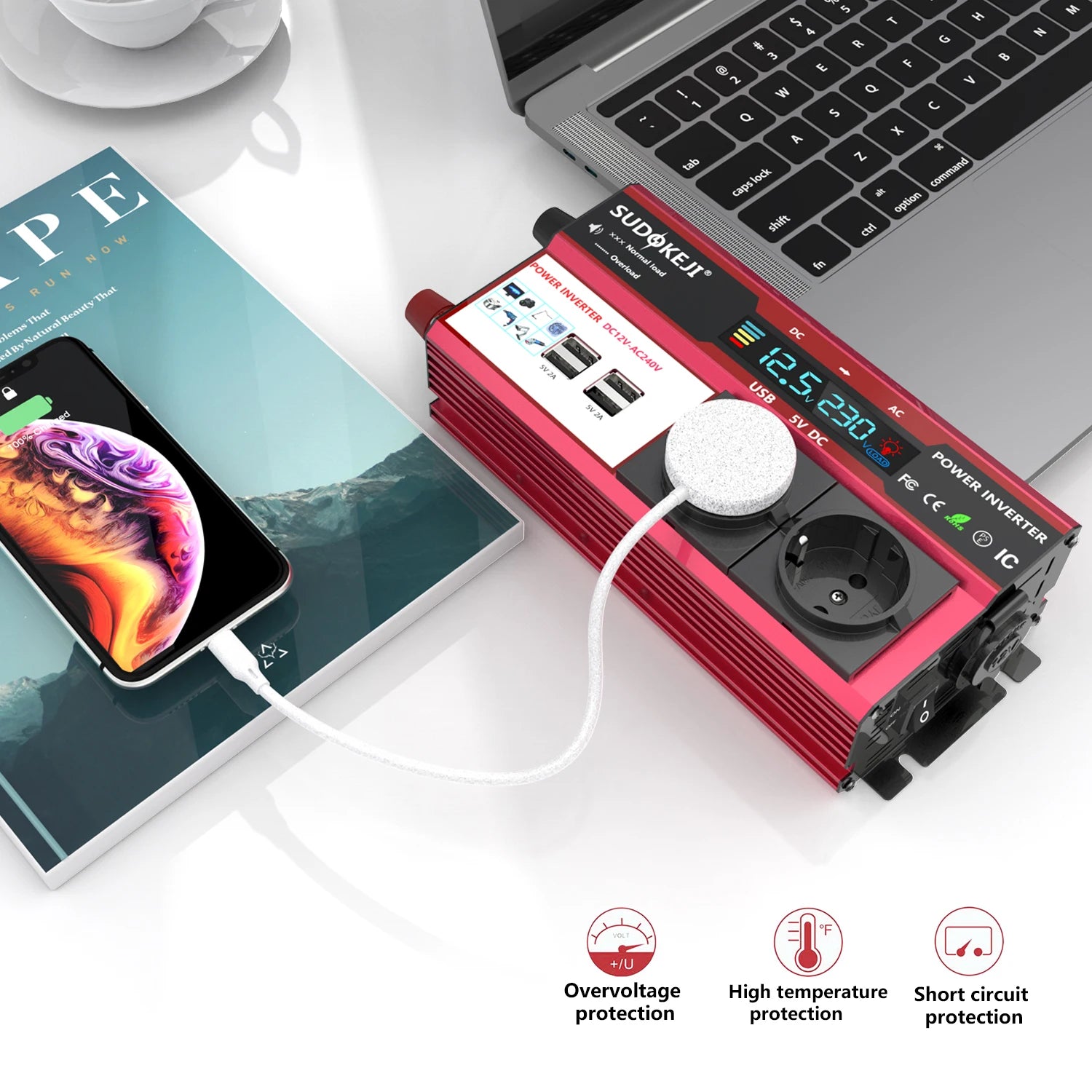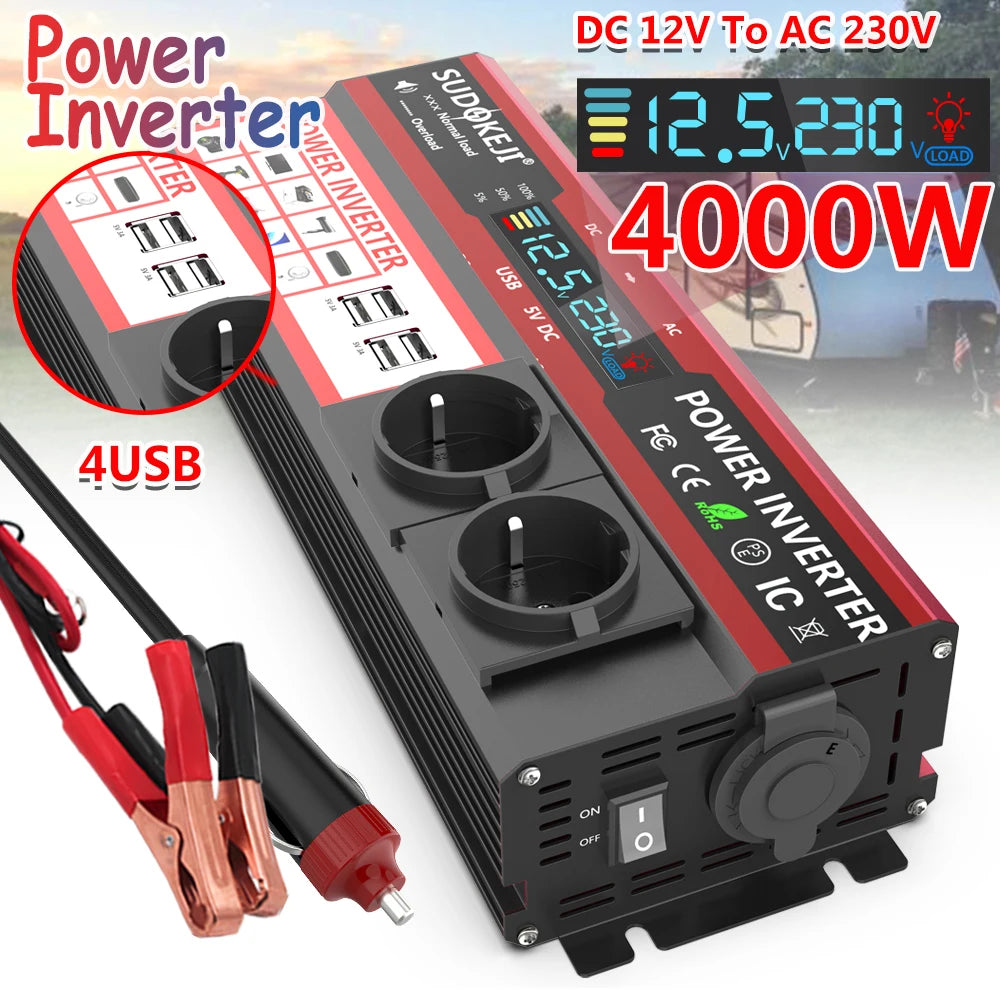 SUDOKEJI 3000W 4000W (MAX POWER)Power Inverter for Car Inverter RV Boat 500W 800W DC 12V 24V To 120V 220V EU US UK Global Socket