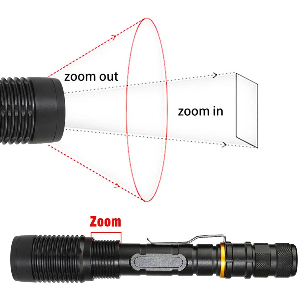 Super Bright LED Flashlight Telescopic Zoom Torch Outdoor Waterproof Work Light Emergency Lamp Camping Hiking Lamp Battery Power
