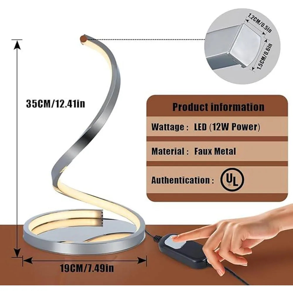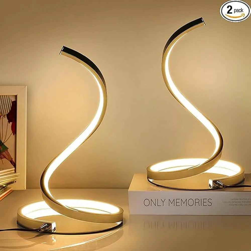 Table Lamp Set Of 2-Modern Spiral Bedside Lamps,12W Stepless Dimmable LED Touch Lamp,Nightstand Lamp for Bedroom, Living Room