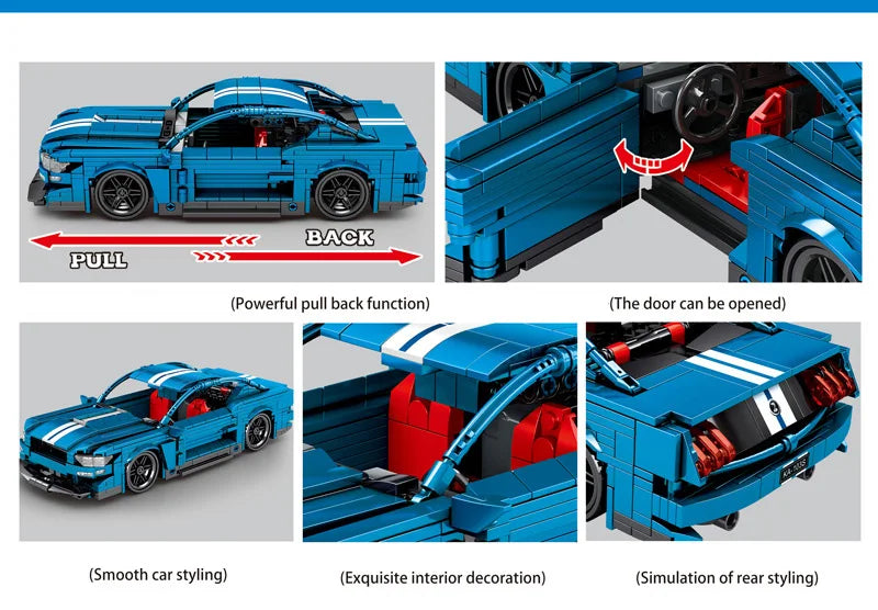 Technical Muscle Car Building Block Mustangs Shelby Gt500 Model Pull Back Vehicle Assembly Bricks Toy Collection For Boy Gift