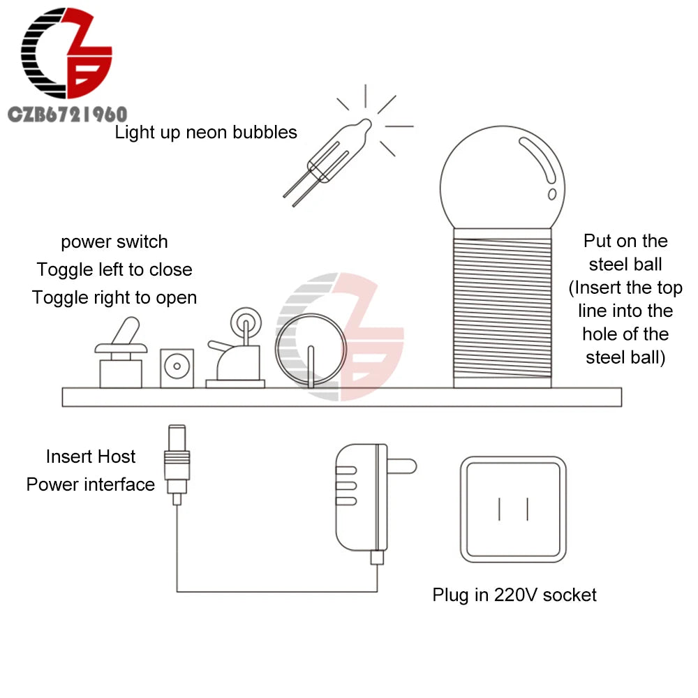 Tesla Coil DIY Kit Touchable Plasma Ball Spark Gap Arc Generator for Physics Teaching Science Experiment Model 9V Power Adapter