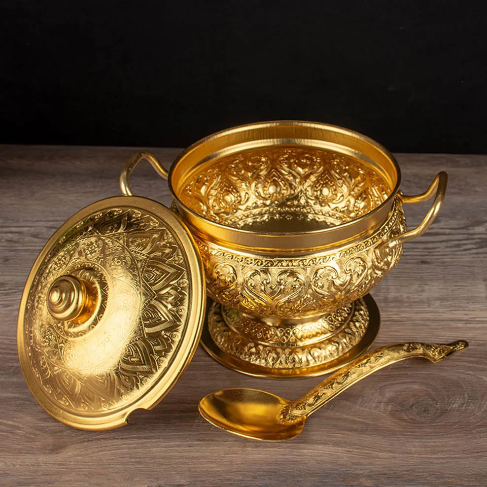 Thai Tom Yum Soup Pot Tall Feet Tin Pan Soup Dessert Container With Spoon Home Decoration Thai Tableware For Kitchen