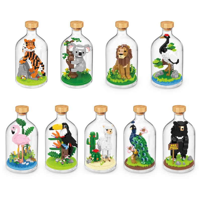 Toys Building Blocks Assembly Tiger Lion Bear Peacock Koala Animal 3D Model Educational Games for Children Kids Gifts