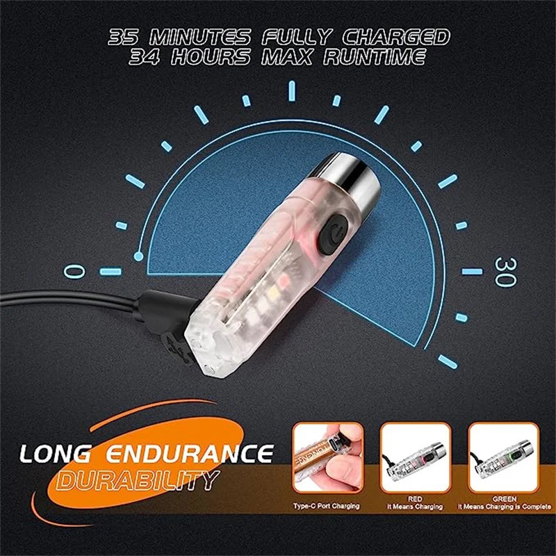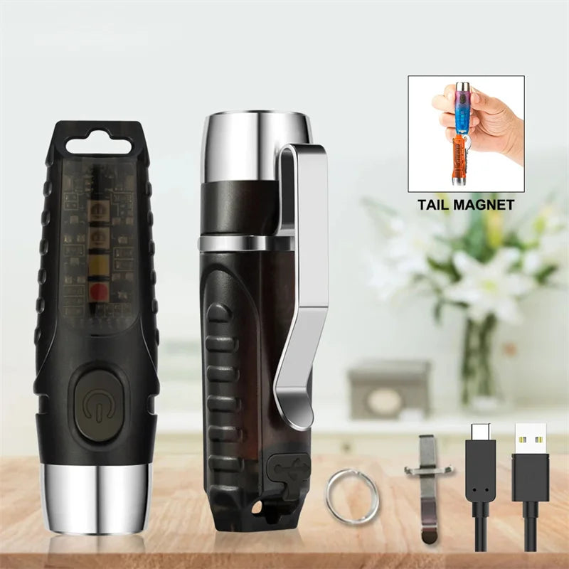 TUNENGE Mini LED Flashlight Super Bright S12 PLUS Portable Torch 600LM Waterproof Work Light Keychain Built-in Battery Magnetic