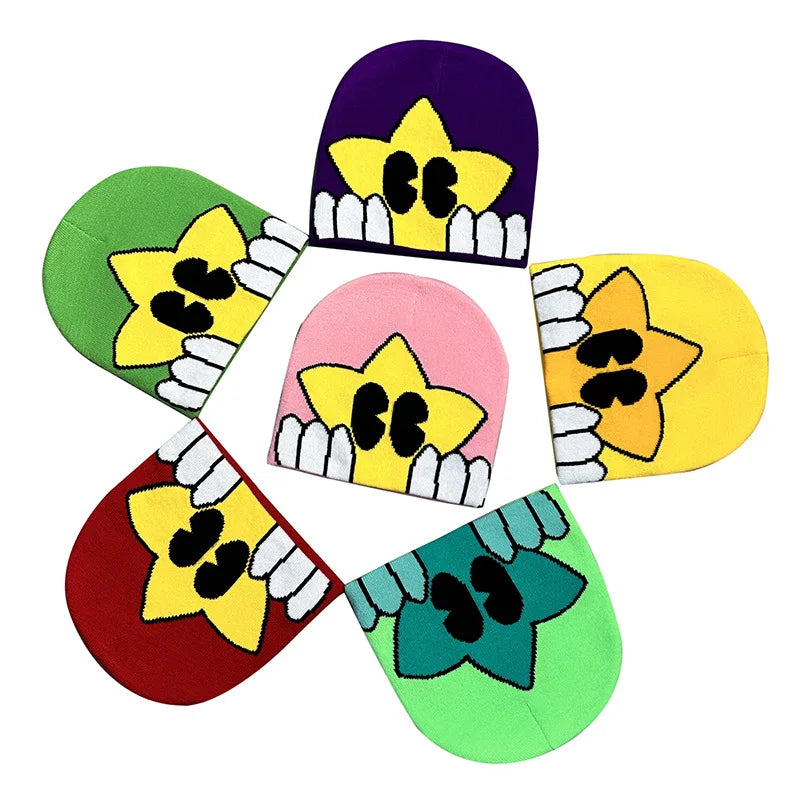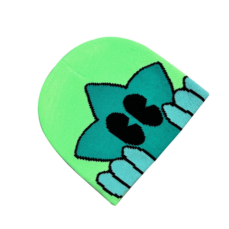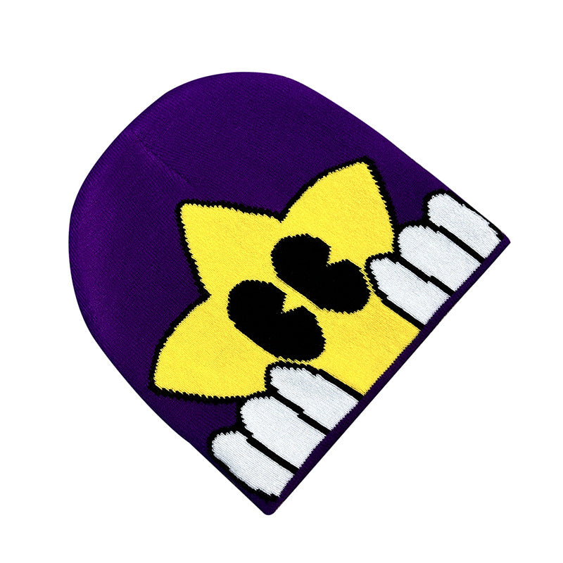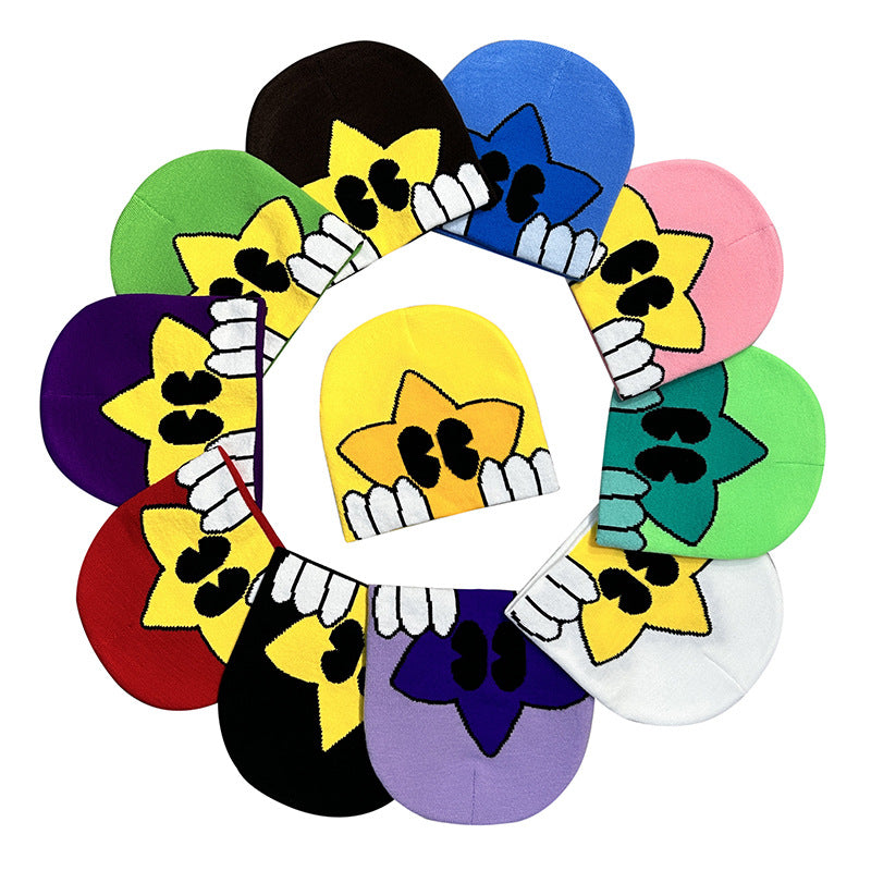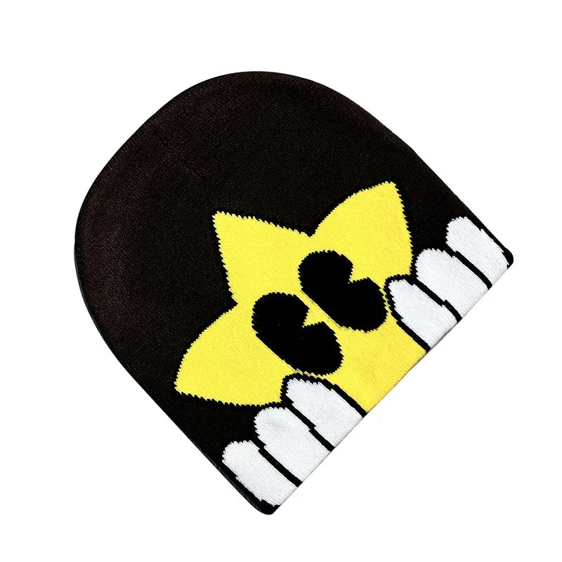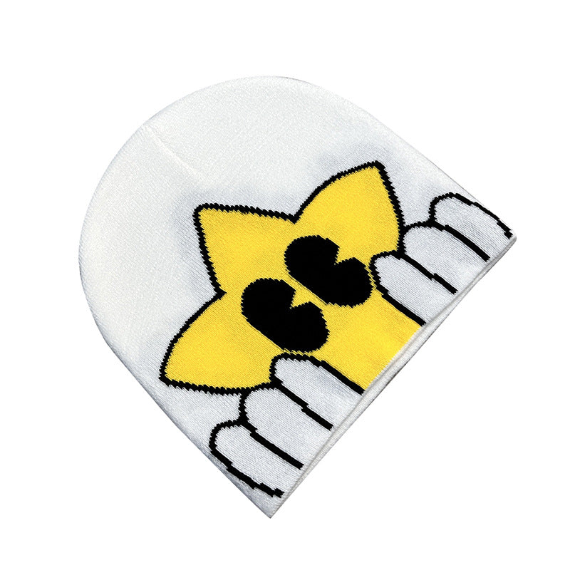 Unisex Winter Knitted Jacquard Cap Woolen Warm Beanie Hats Smiley Star Kpop Wool Skullies Fashion Bonnet Y2K Couple Hat Gorros