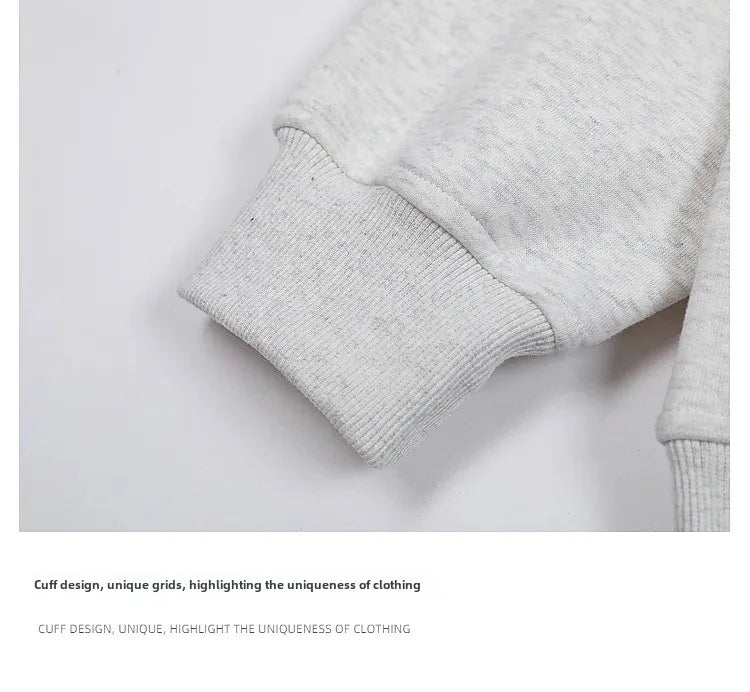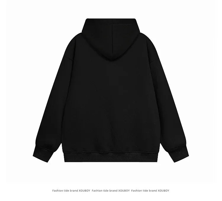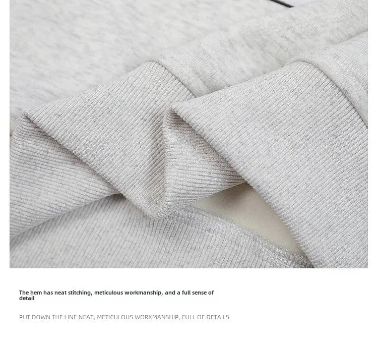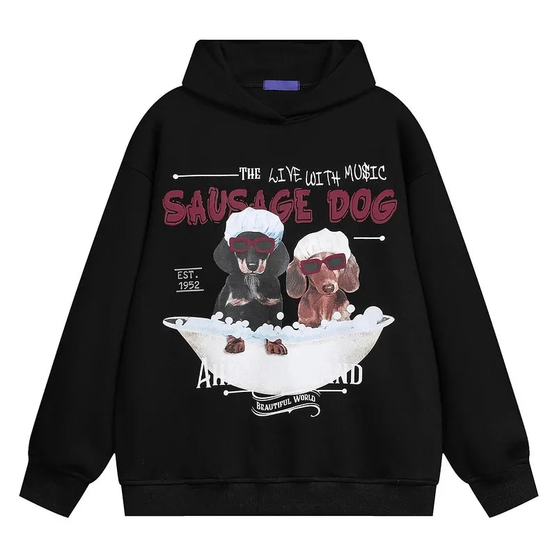 Vintage American Style Men's Creative Cool Dog Print Loose Fit Grey Fleece Lined Hooded Sweatshirt Couple Model Casual Wear