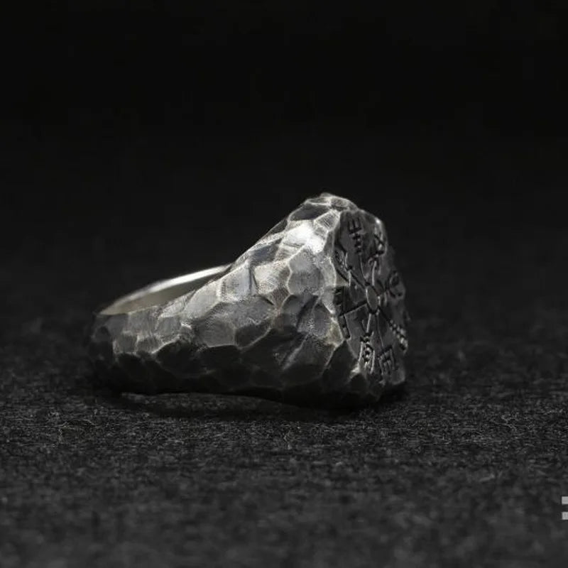 Vintage Scandinavian Handmade Engraved Compass Ring Personalized Thai Silver Open Ring