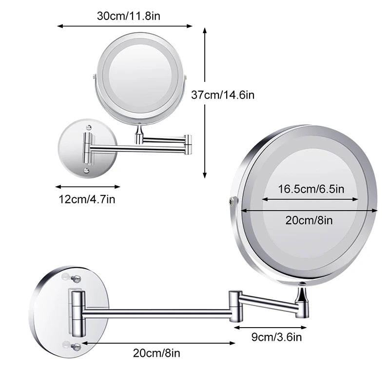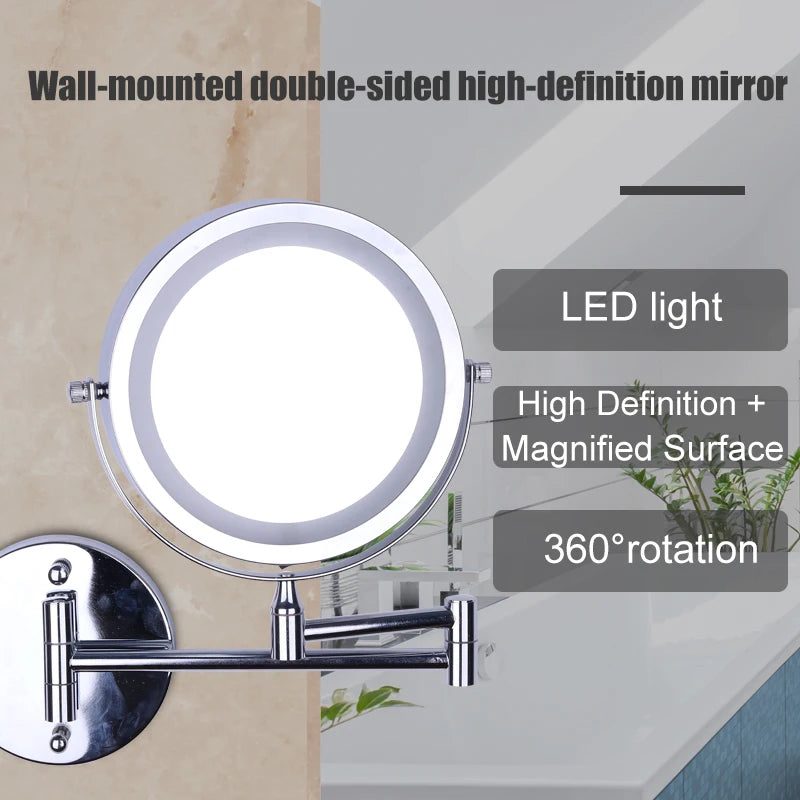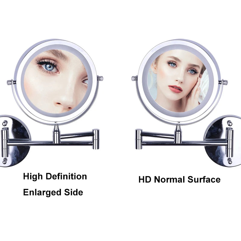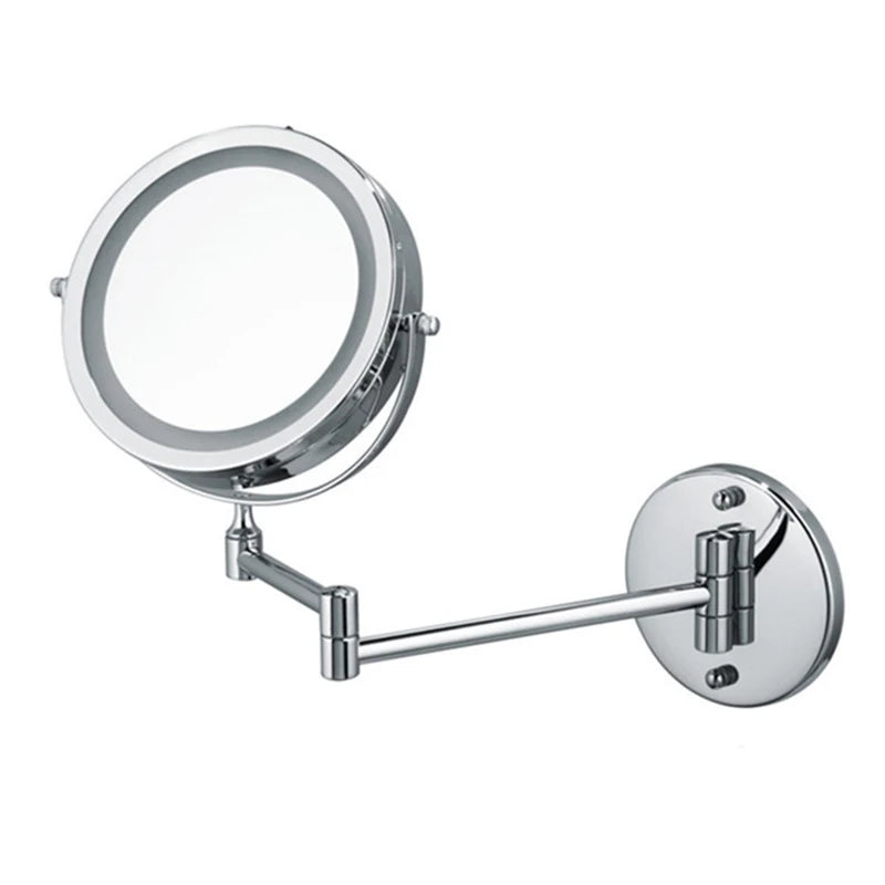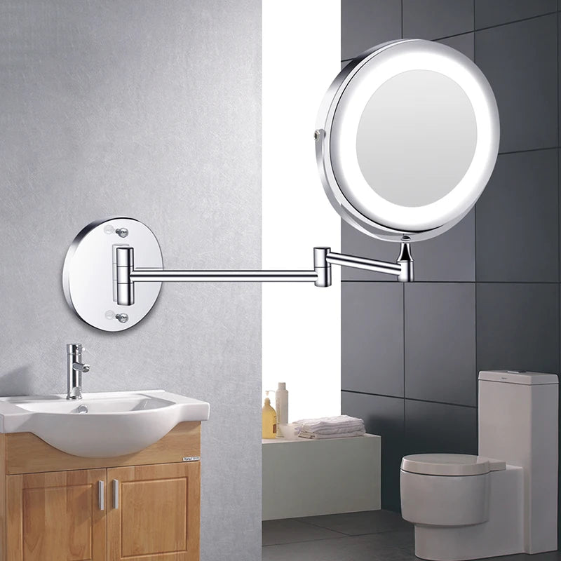 Wall Mounted Folding Arm Extend Bathroom Mirror With LED Light 10X Magnification Double Side Touch Dimming Makeup Mirrors