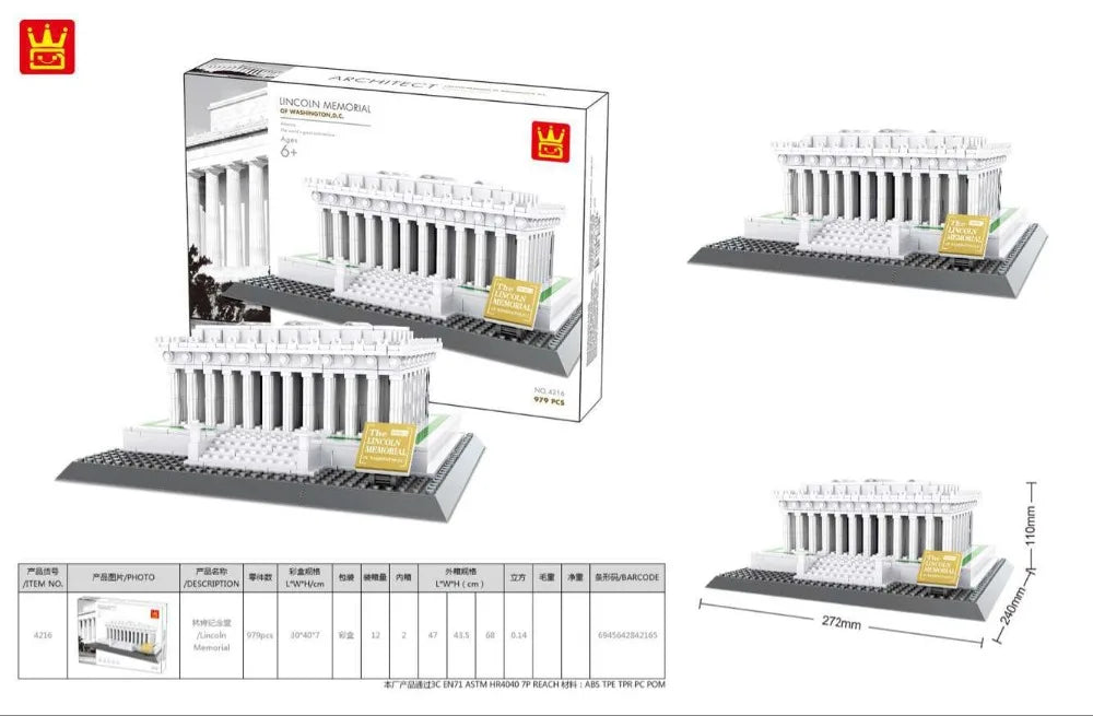 Wange Blocks World Architecture Building Bricks Trevi Fountain Model Pyramid Educational Toys for Children Gifts 4210-4224